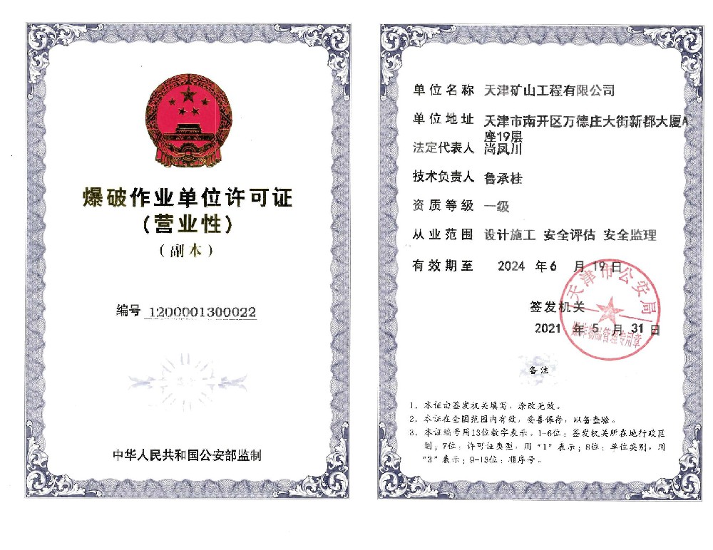 天津礦山工程有限公司(以下簡稱公司)始建于1965年,隸屬中國建材集團有限公司,是從事礦山總承包、礦山開采運營、礦山設計與咨詢、土石方爆破、生態恢復治理、鋼結構制作安裝、機電設備安裝以及工程測量的專業化礦山施工企業和礦山開采運營總承包服務商。具備礦山總承包和爆破雙一級資質。 公司始建于1965年,總部位于天津市···